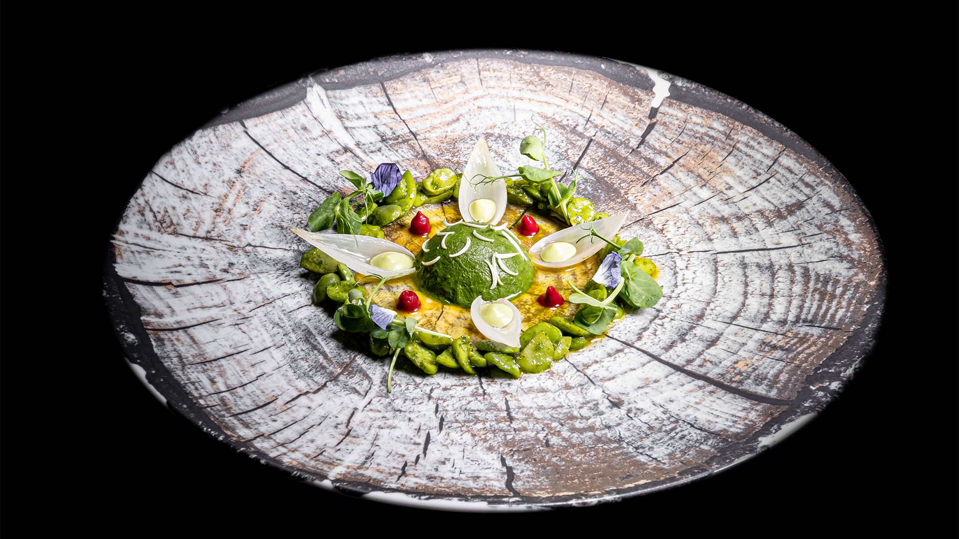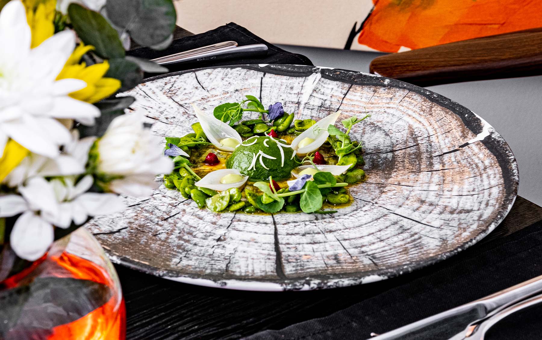 Hout Bay Tuna Tuna toro tartare. Trout caviar. Coconut jus. Bloemfontein Lamb Sliced lamb loin. Artichoke. Broad beans. Red quinoa & lentil. Artchar. Cape malay lamb jus. Centurion Butternut Garden Charred butternut puree. Butternut ragout. Butternut jelly. Butternut texture. Avocado. Ginger confit.